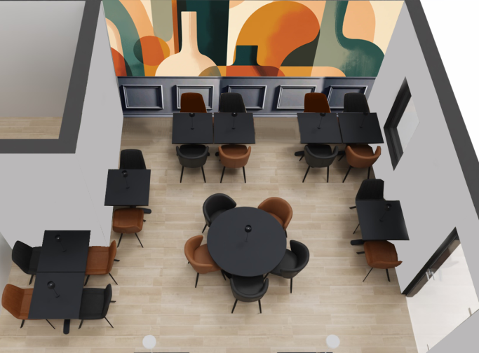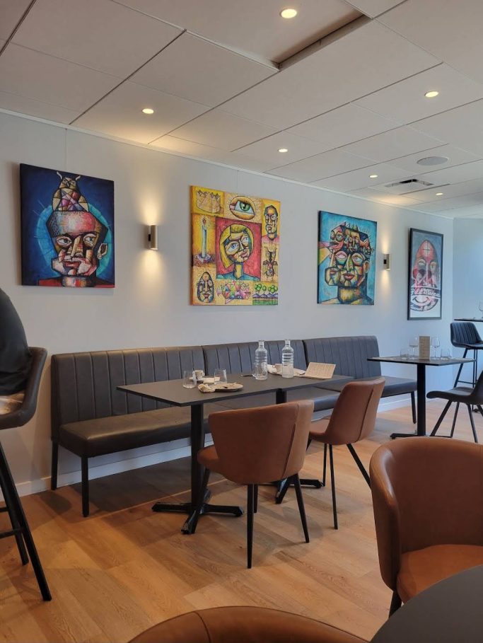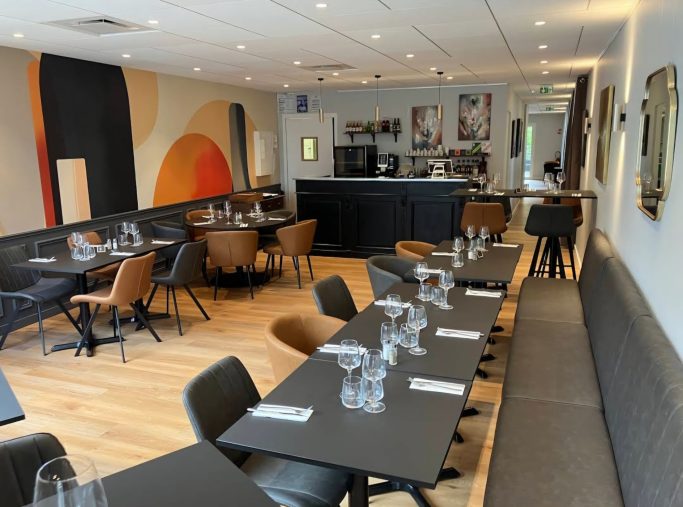 Un soubassement foncé vient équilibrer l'espace combinant à la fois tradition et modernité. Le lieu accueille également des expositions d'art, permettant de transformer les murs en support d'expression, tout en offrant aux clients l'expérience d'un restaurant vivant, culturel et convivial.