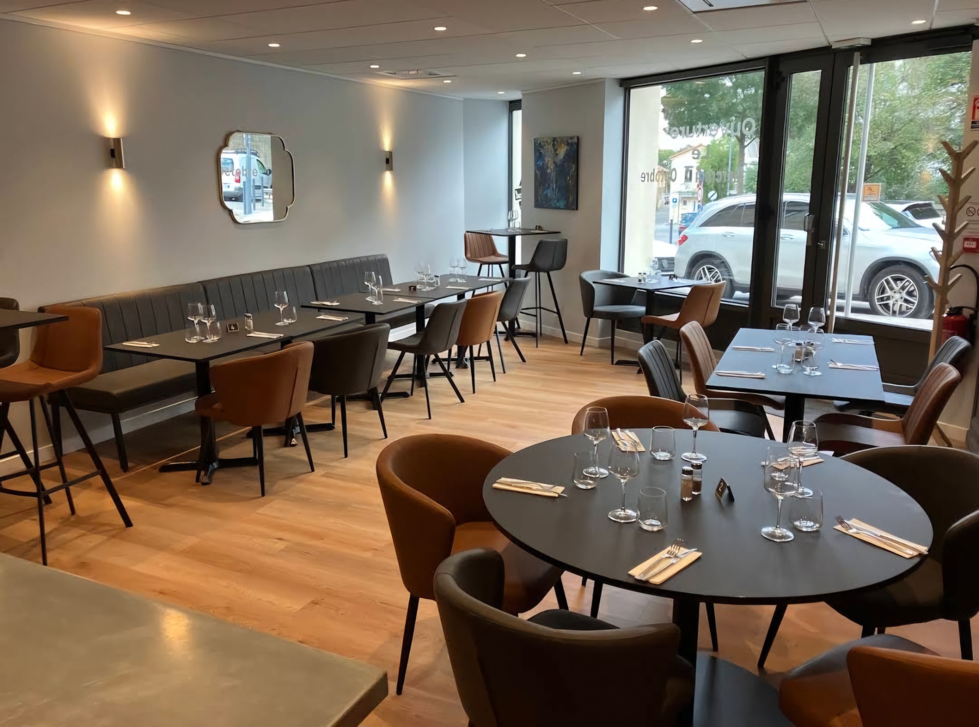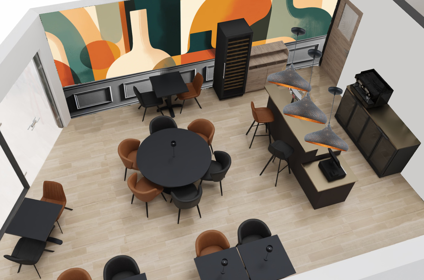 Le restaurateur du Petit Marcel a fait appel à Atelier Raïtzas afin d'imaginer et de concevoir l'aménagement et la décoration de ses deux salles. Ce projet à été mené dans un véritable échange avec le client, en travaillant main dans la main sur l'ambiance, les couleurs et les matériaux souhaités. Ensemble, nous avons défini une atmosphère chic et chaleureuse, basée sur des teintes neutres et raffinées, renforcées par un papier peint aux motifs abstraits inspirés du vin, apportant à la salle une dimension élégante et connaisseuse.