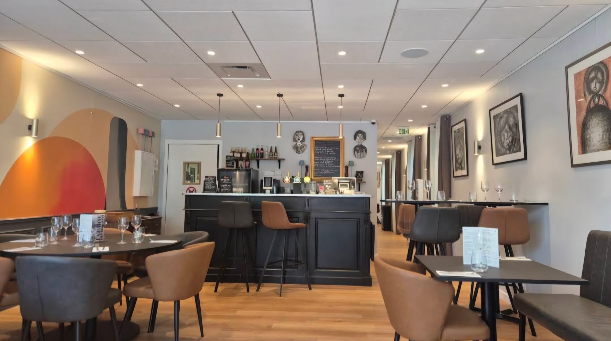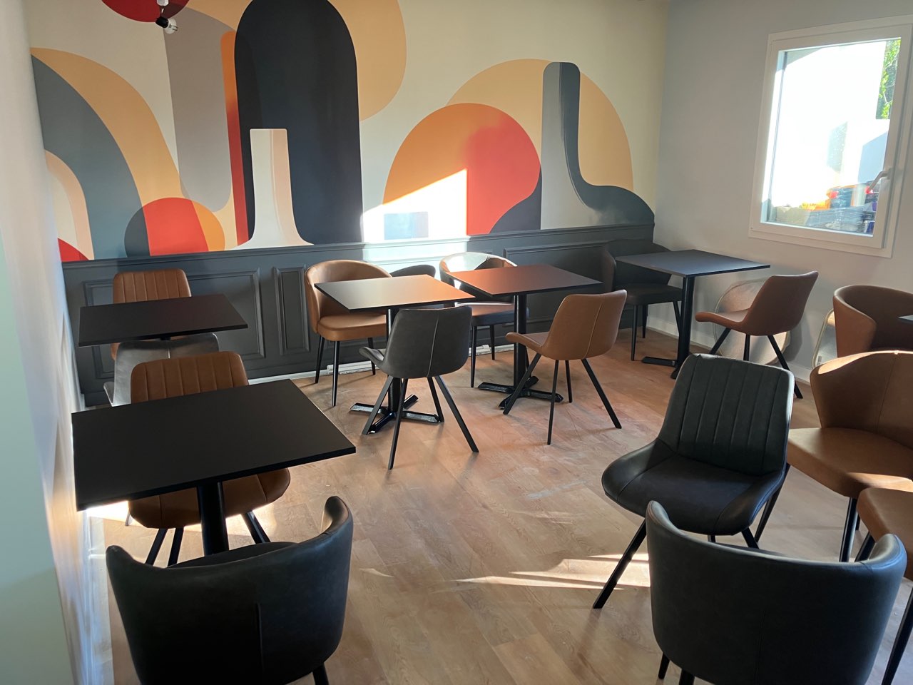 Un soubassement foncé vient équilibrer l'espace combinant à la fois tradition et modernité. Le lieu accueille également des expositions d'art, permettant de transformer les murs en support d'expression, tout en offrant aux clients l'expérience d'un restaurant vivant, culturel et convivial.